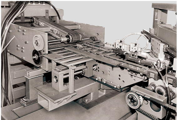 由電機、傳動輥及滾輪、皮帶、出料壓輥裝置等組成。片料剪切后經(jīng)過壓輥裝置排送到出料臺,出料臺是剪切段與理料機的過渡段,它把切好的片料輸送到理料機上。