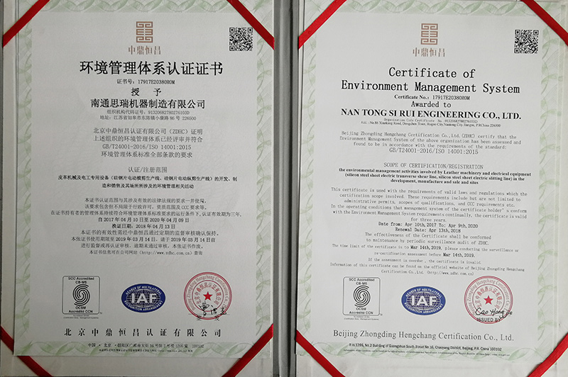 環(huán)境管理體系認(rèn)證證書